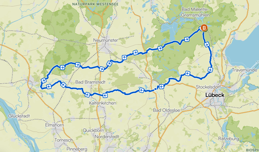 Nun führt die Strecke im größeren Bogen um den Schweriner See, durch die Lewitz , vielleicht noch an der Warnow- Quelle vorbei. Eine weitere Einkehr ist in Sternberg oder Brühl geplant, bevor es über Bad kleinen und Rhena wieder zurück nach Lübeck geht.